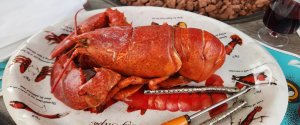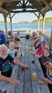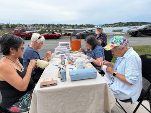 On Saturday the weather went south on us, and a planned fishing trip had to be cancelled. Kayakers Alicia and Tammy were undaunted though, and they enjoyed a shoreline tour. Other Pyros toured the Lunenburg art galleries. That evening Susan and Rick hosted a Down Home Lobster Boil, with everyone learning how to use all the tools necessary for extricating the meat from the shells. It was definitely messy, but it was also delicious!