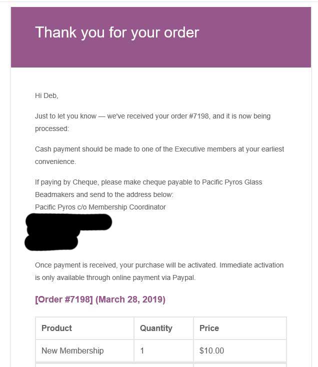After you place your order you will receive a couple of emails. One thanking you for your order, and another welcoming you to Pacific Pyros.